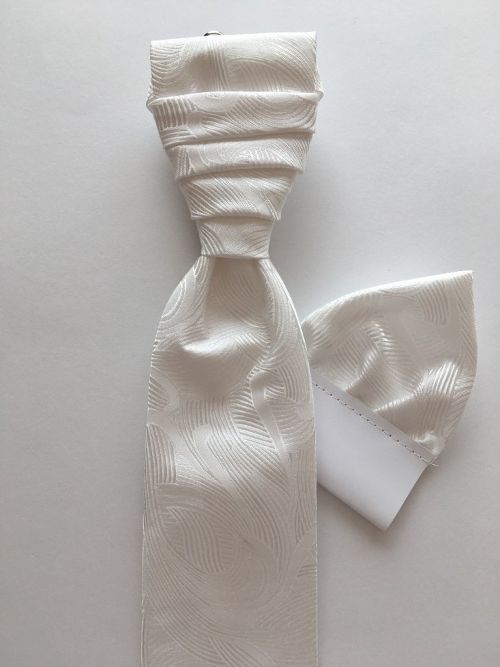 Regata je předvázaná a snadno ji pomocí regulace upravíte pro každý obvod krku, součástí balení je i barevně sladěný kapesníček do klopy Vašeho saka.